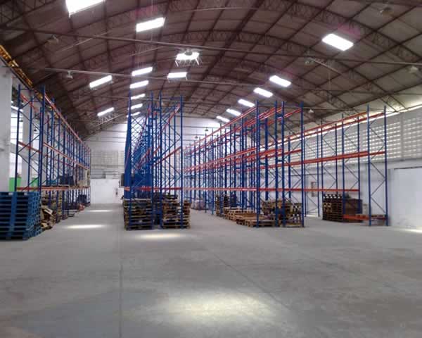 Estrutura montada com 900 posições pallets para armazenagem e movimentação.
